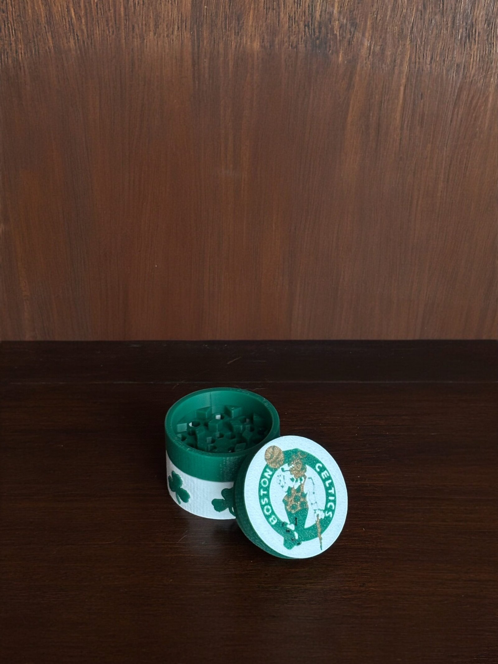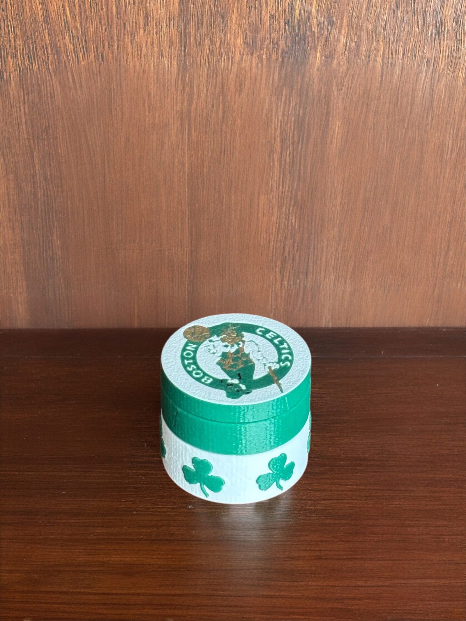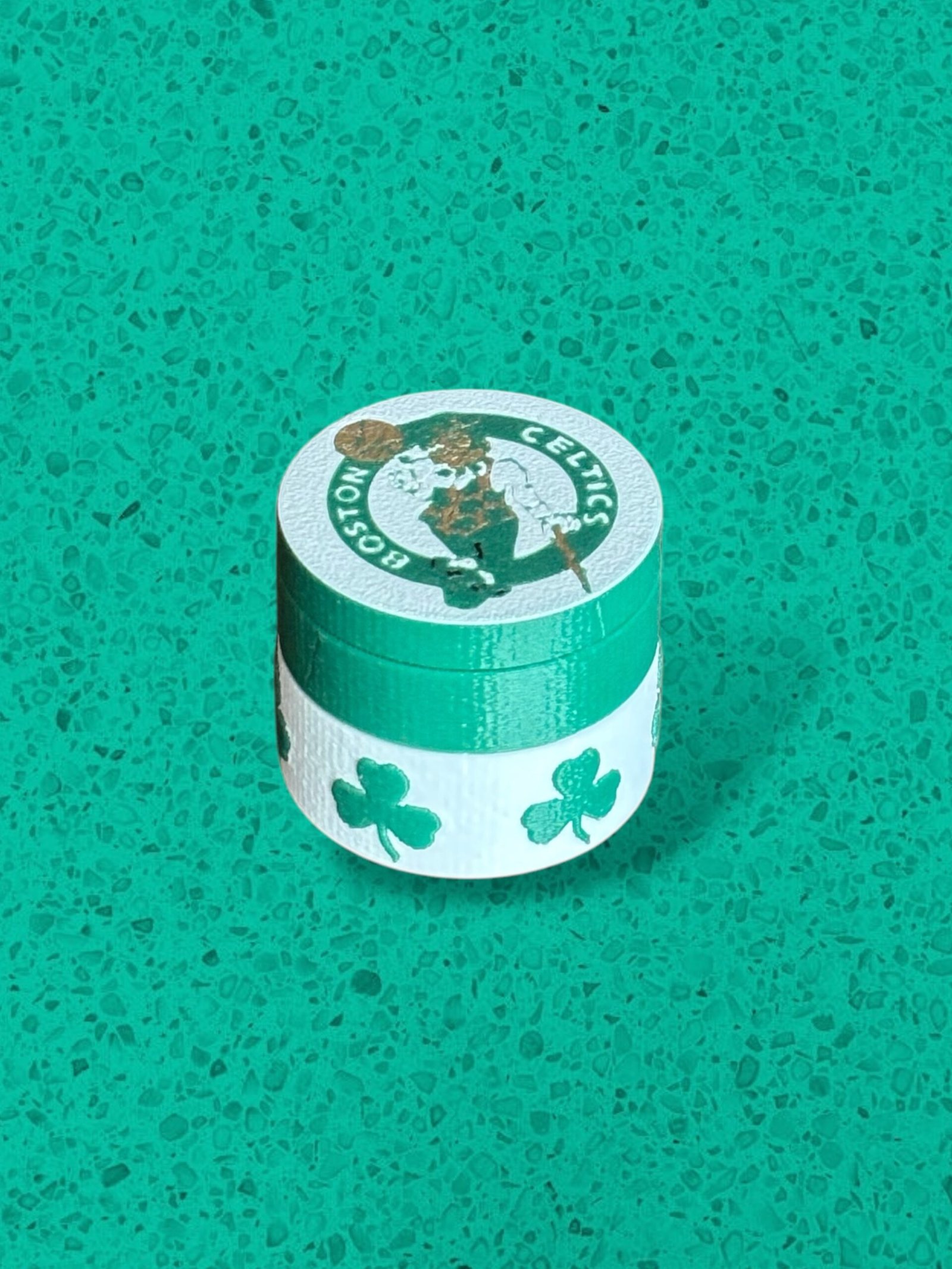 Si eres fanático de los Boston Celtics, este desmorrugador premium es el complemento perfecto para tu colección. Fabricado con impresión 3D de alta calidad, cuenta con un diseño detallado en los icónicos colores verde y blanco, acompañado de tréboles y el emblemático logo del equipo.